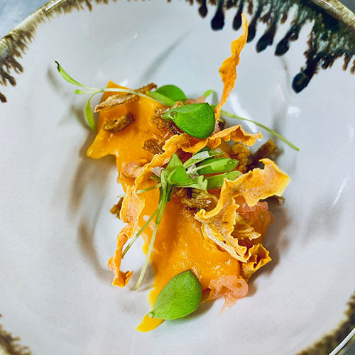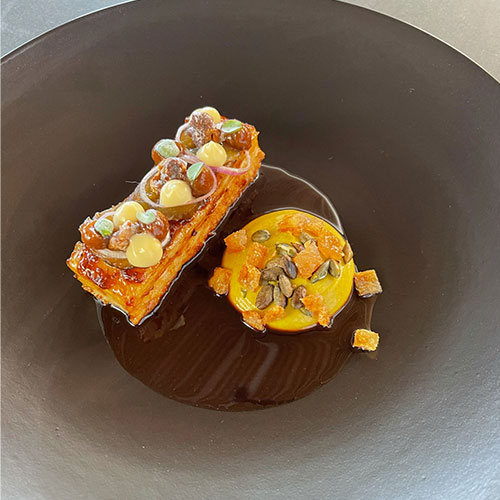 3 ways of butternut, crispy, puréed, fermented