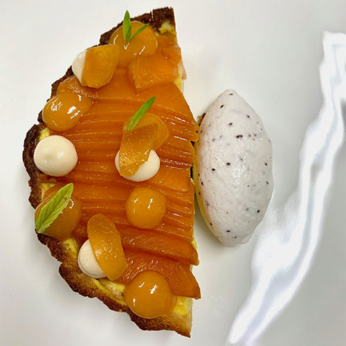 Preserved peaches tart and sour fig ice cream