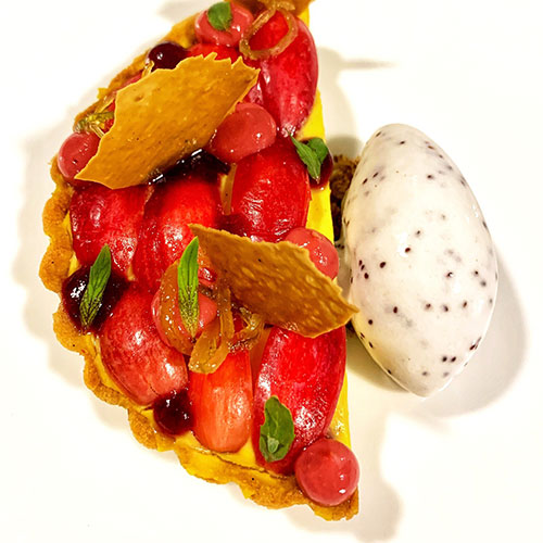 Candied Num-Num’s and lemon tart, sour fig ice cream